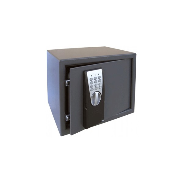 Caja fuerte doméstica apta para hoteles y domicilios, compuesta con teclado electrónico de uso muy sencillo y bulones de cierre accionados por pomo.